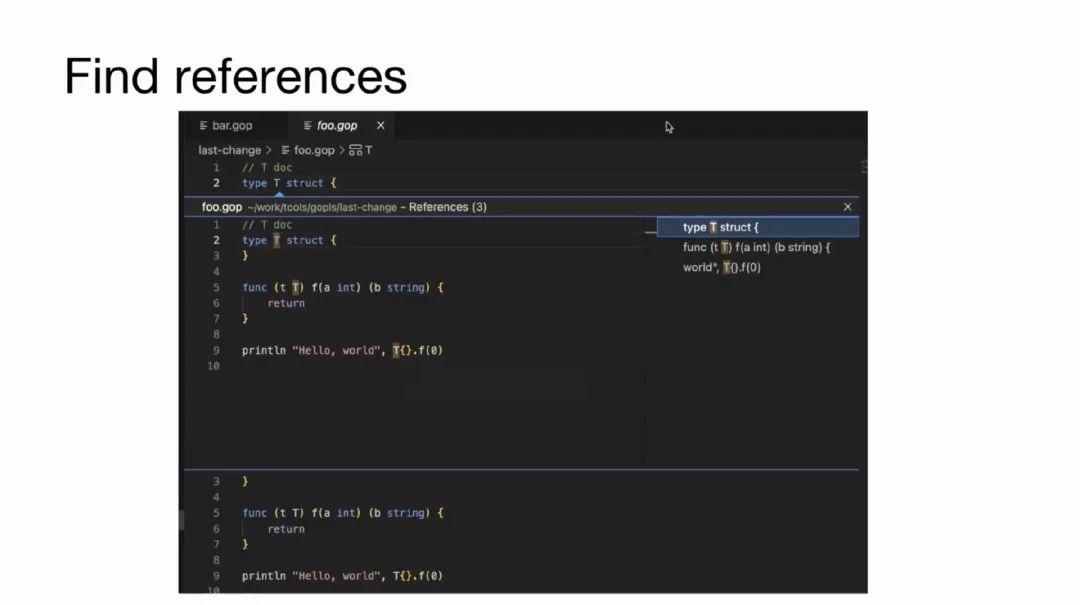 刚才是跳转到定义,这个功能是从定义跳转到所有。我们想要找一个符号在哪些地方用到了,通过这个功能就能非常方便。