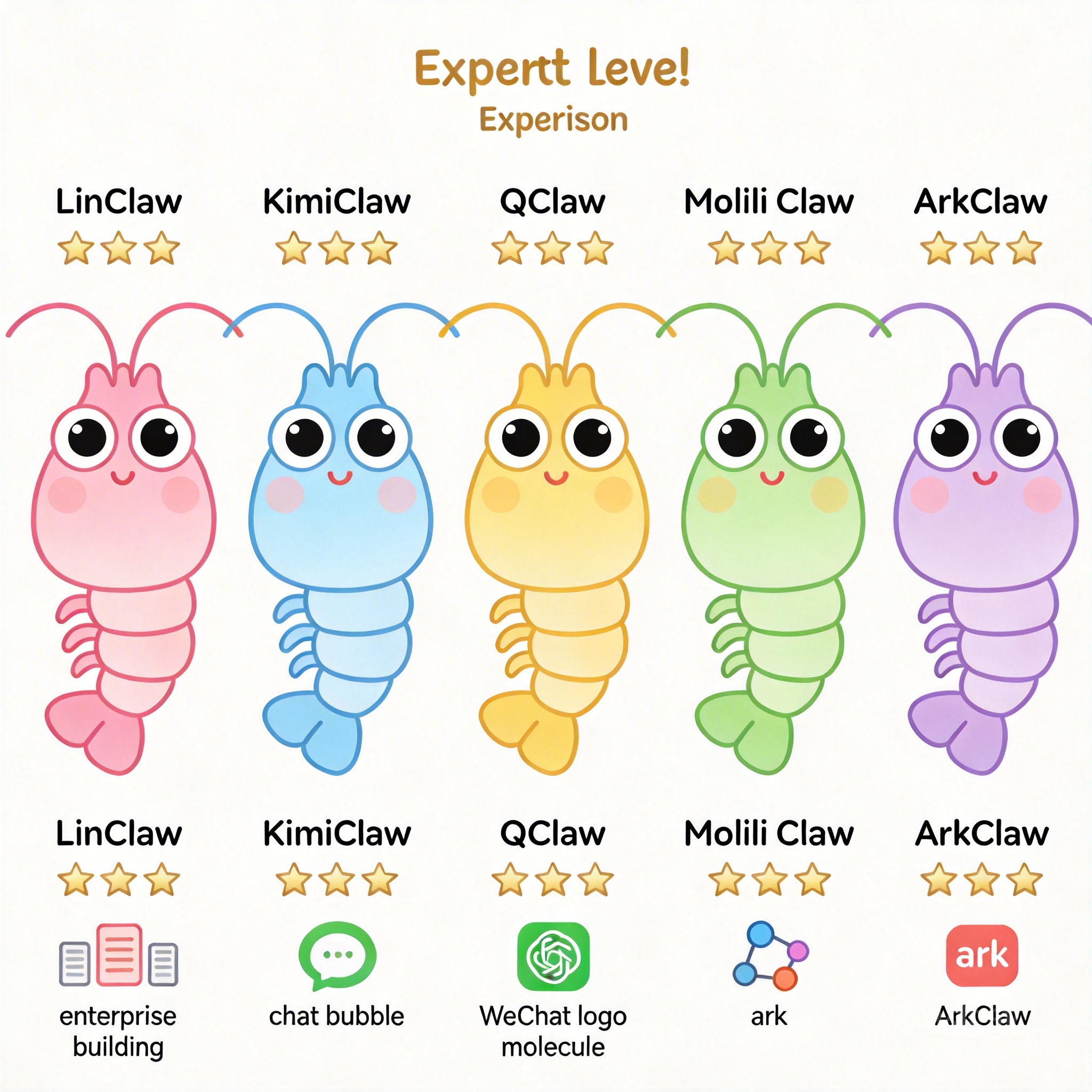 既然是"养虾",那自然要选一只适合自己的"虾"。2026年主流的 Claw 产品已经相当丰富,下面这张对比表从"饲养难度"角度帮你快速选型: