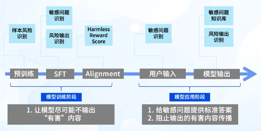 2)模型应用阶段:阻止有害内容传播,为敏感问题提供恰当答案