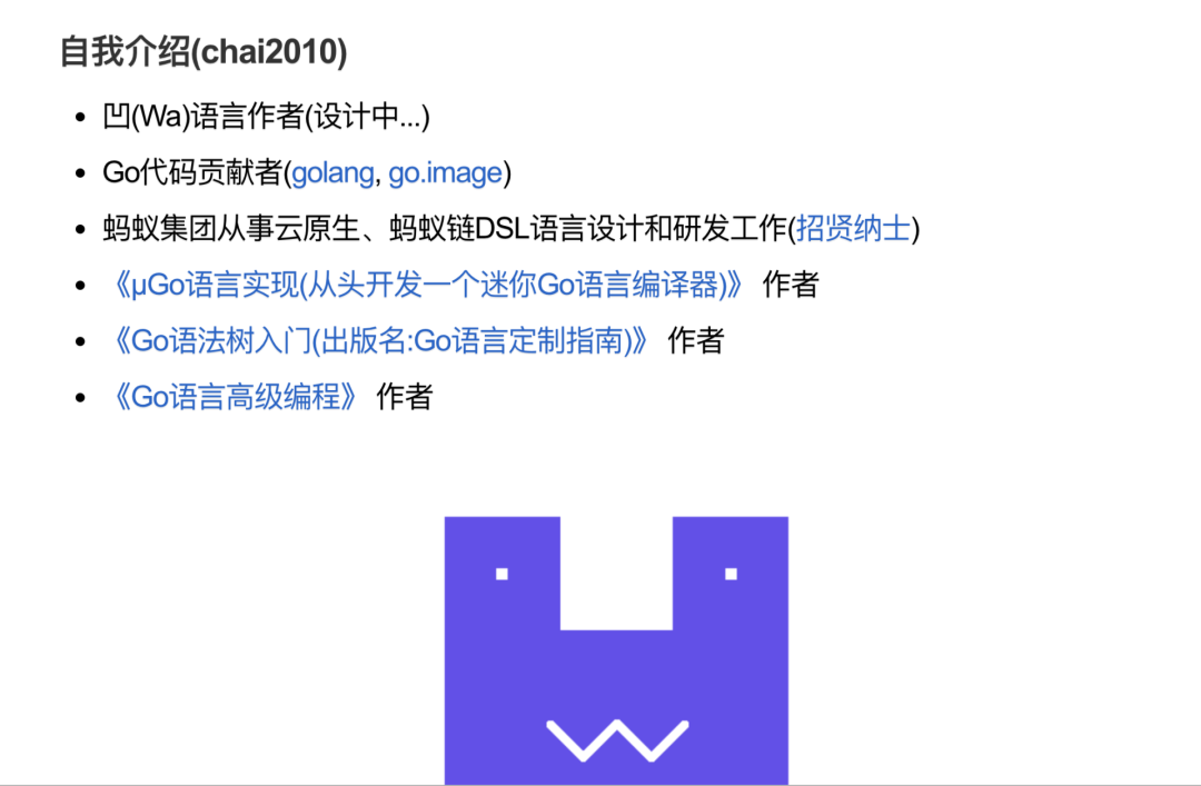 我从 2010 年 Go 语言发布后便开始关注这门语言,后续因为个人的兴趣驱动,一直在研究和探索 Go 语言以及语法树、编译器领域。我也出过几本书,写书的原因是当我不懂某个领域时,可以通过写书的过程来学习其中的技术,如果熟悉某个领域,反而可能没有写书的动力。