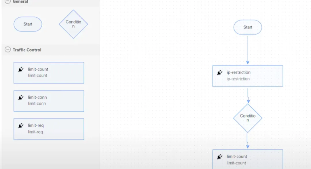 这个功能其实隐藏了一个很大的好处,每一个插件的代码都被完整的测试案例覆盖到。也就是说当用户进行插件编排时,可以不用写任何代码。这对于像产品经理、安全工程师以及像运维工程师来说,不需要投入专门的学习成本,只需要拖拽一些插件然后设置一些条件,就可以诞生一个专属自己的 APISIX 新插件,同时这个新插件的代码质量是和开源 APISIX 的官方代码质量一样高。