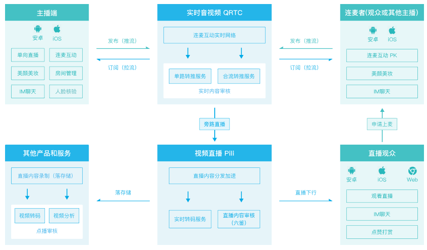 该方案的核心,是实时音视频QRTC服务,它能够提供300毫秒的超低延迟,轻松支持万人级别的超大房间和多达50名主播的同时在线互动。高性能的全球传输网络,历经数亿场直播的考验,通过智能路由和负载均衡,确保了在高并发场景下的极致流畅体验。