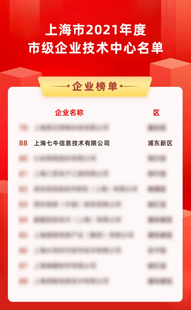 日前,上海市经济和信息化委员会发布了 2021 年度(第 27 批)市级企业技术中心,从产业发展定位、技术积累、创新平台等多方面进行考核判定,经专家评审,七牛云脱颖而出,被授予“ 2021 年度上海市级企业技术中心”,为支撑产业高质量发展贡献硬核力量。
