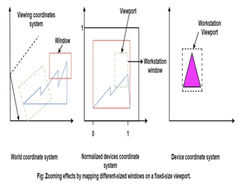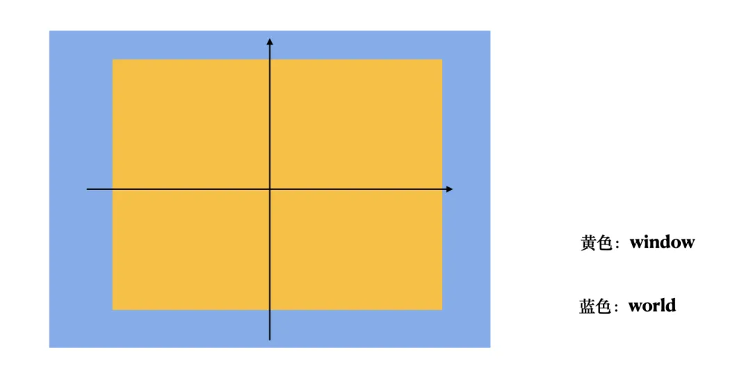 如上图所示,黄色部分的 windows 无论放大多少倍,都不会超过蓝色 world 的范围,会随之进行等比例的放大或缩小。但坐标体系因为归一化,所以不会发生变化,坐标原点保持在世界中间 (0,0) 的位置。