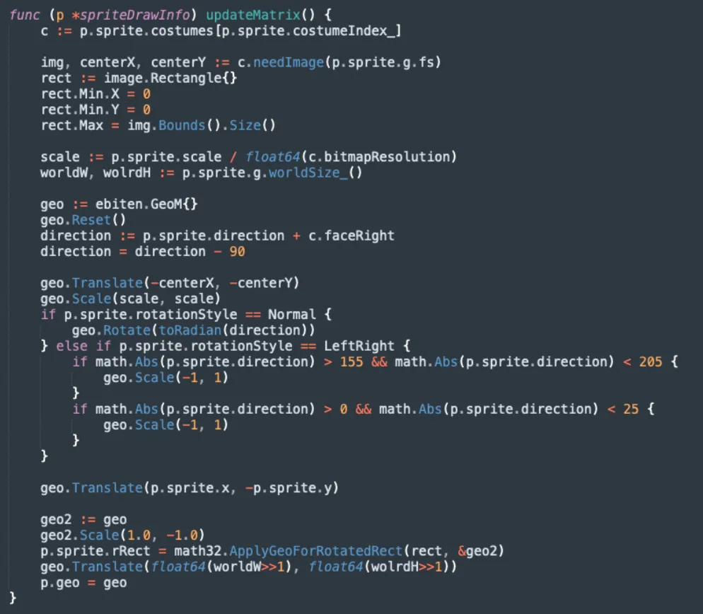 将世界坐标转移到窗口中,可以通过矩阵,通过精灵点的信息乘以所在世界的矩阵信息,也就是平移和旋转,从而映射到窗口中。