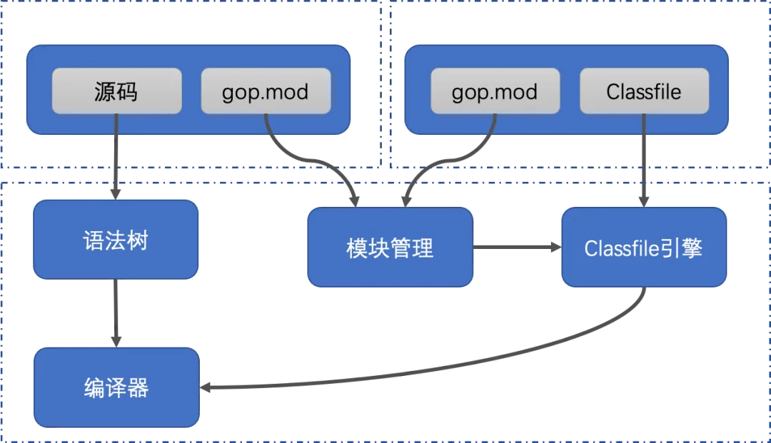 该部分主要相比于 go.mod 增加了几个语句,也就是 gop.mod 1.0。也就是说 ClassFile 是基于 gop.mod 1.0 进行的开发。