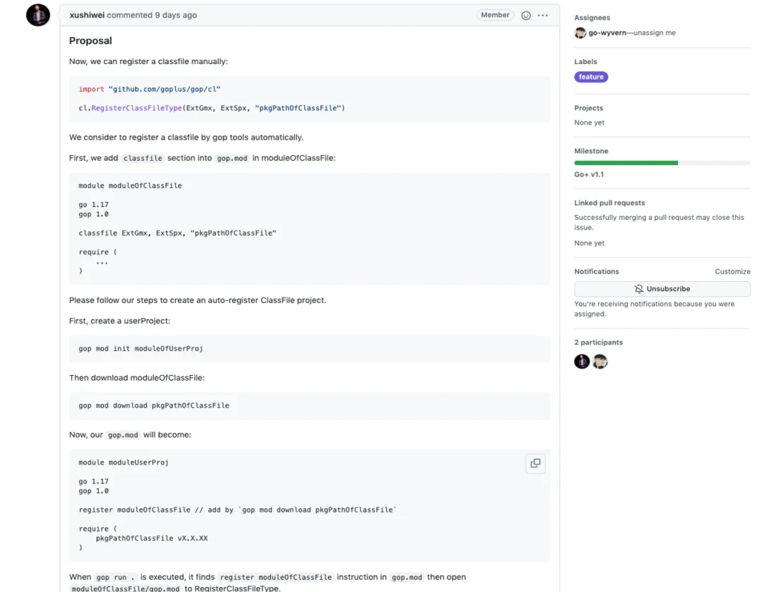 Go+ 的官网目前暂时还没有具体的 ClassFile 设计规格文档,但老许此前提过一个 issue: