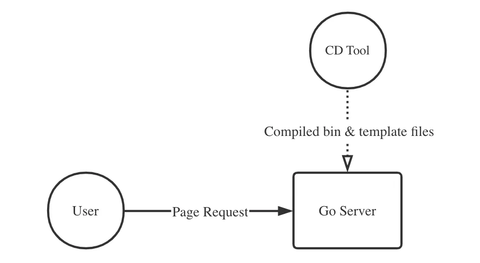 当goplus.org repo中的代码发生变更时,自动化的构建工具会拉取所有的代码并进行编译,在编译过程中,会将React Component渲染为HTML files,然后将HTML files和当中可能包含的JavaScript、CSS共同上传到静态文件存储服务(即图中的Static File Storage)中,例如七牛的对象存储服务。用户访问站点时会先请求到CDN,CDN节点再去请求静态文件存储服务。