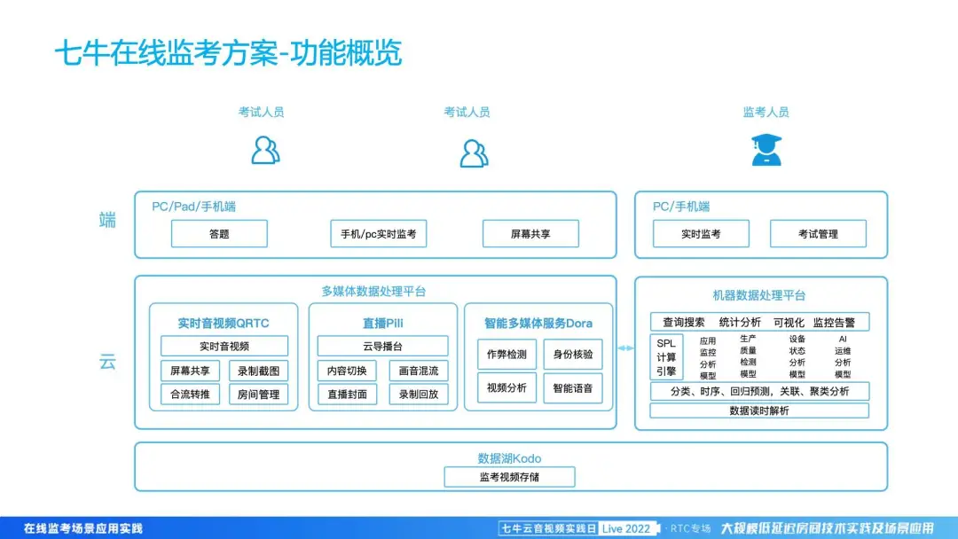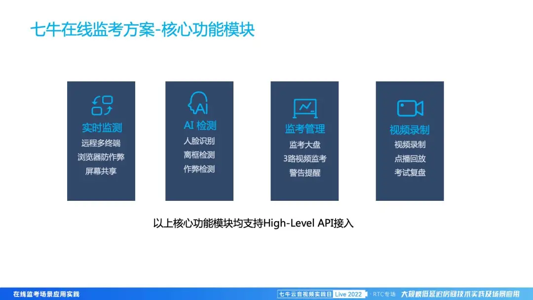 七牛云的在线监考方案,从核心模块上来讲会分为四个部分: